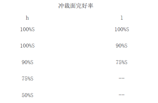 例中,沖裁面粗糙度Ra=2.4μm;完好率h=90%S;l=75%S;撕裂級別為2。
