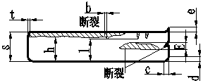 總和不大于相關輪廓的10%;t—允許的斷裂深度為1.5%S;e—毛刺高度(mm);c—塌角寬度為30%S(Zui大);d—塌角深度為20%S(Zui大)(齒形件時為30%S);E—撕裂帶的Zui大寬度。